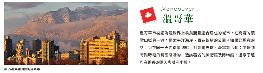 卑詩省的第一大城市,加拿大第三大城市。2010年冬季奧林匹克運動會舉辦城市之一。緯度雖高但有暖流經過,所以冬季降雪較少、港口不結冰,氣候溫和,四季宜人,市區草地常綠、繁花似錦,有許多城市公園,連續數年入選為世界最佳居住城市。西岸最大的港口、靠海岸山脈,面喬治亞海峽。豐富的人文資源而著稱,成為加拿大的旅遊勝地,居民由不同文化背景的移民組成。
