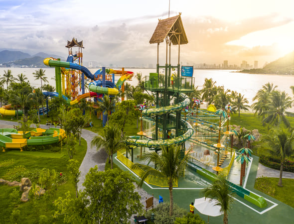 水上樂園+海洋公園:大型水上樂園、兒童泳池、人工衝浪池、水上城堡、海豚表演館、海底世界等活動。園區擁有東南亞最大的泳池以及長達700公尺的私人沙灘,你可以選擇水上城堡樂園戲水、享受日光浴。
