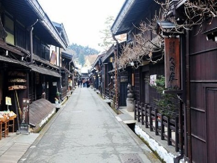 陣屋步行三分鐘可抵達有高山小京都之稱的「上三之町」,由數條街道組成的「古町並」,有古老的商店街、橋樑、寺廟與釀酒廠等。屋齡大都在三百年以上,是稀有珍貴的古建築物群,走入街道,仿佛錯落入時空迴廊。在刻意的維護之下,每間店舖的外觀建築和內在陳設都保存江戶時代以來的濃厚古早原味,街頭豎立的看板條列著逛街的注意事項,畢竟美麗的街坊是需要住戶與遊客全體共同用心維護。「古町並」街上有扇子店、香氛店、漬物店、味噌店等,另外值得一提的是由於飛驒高山水質好、天氣冷,出產的米酒特別香醇。每年1-3月陸續推出當季的酒,酒舖在新酒送到時就會掛起松木球表示歡迎客人上門品酒。