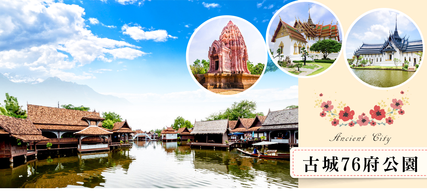 「一天就能讓你遊遍整個泰國!」這是古城76府文化博物園的招牌口號。將泰國各地各區的歷史或特色建築,按原比例縮小後,原汁原味的重建在這個樂園的各個角落內。整個園區內共有116個景點開放參觀,按照泰國四大區(南部、中部、東北部、北部)的地理位置排列,把當地重要的歷史建築與雕刻一一重現在眼前,讓您仿如置身當地,可說是放大版的小人國!