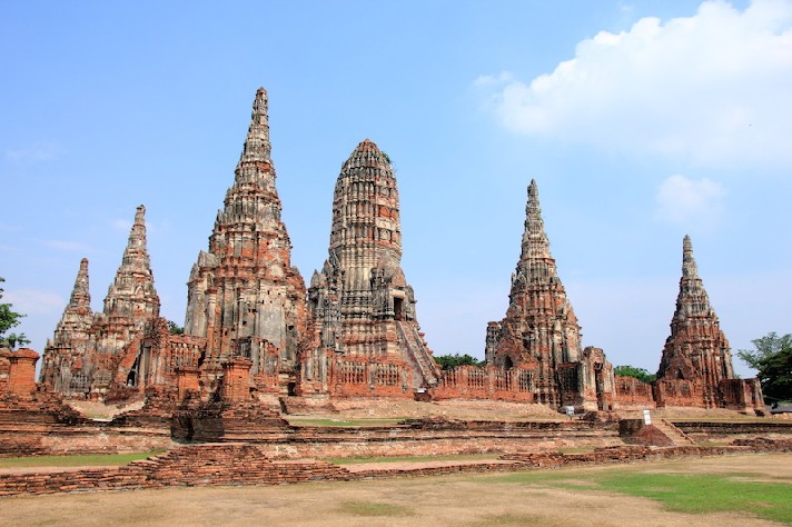差瓦塔納蘭寺(WatChaiwatthanaram)又稱「貴妃寺」,為當時巴薩通王(PrasatThong)為了紀念居住於此的母親而建。臨昭披耶河西岸而坐,與河景並列而存,徜徉在這靜謐的古老氛圍中,發呆、看景,不免為此行一大享受!不只佔地廣闊,此廟本身也算保存的相當完整,在飽受摧殘的戰火遺址中,自成一格。每一位來過的人都說是《大城最美的佛教古廟》,為大城景點中必去之一!