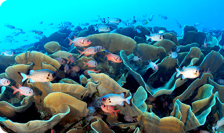 【山中湖沈船區】:首先由專業又熱情的導遊,親切的教導如何正確使用浮潛裝備及水上安全事項,就算怕水或是不會游泳的你也能輕鬆自在快樂的浮潛,親眼目賭第二次世界大戰被擊沈的船艦殘骸,記錄著歷史的遺跡。此海域因為受到大小島嶼的包圍,使得此海域風平浪靜像湖泊一樣,您可以放鬆心情在此練習浮潛,並欣賞美麗的海底景觀。