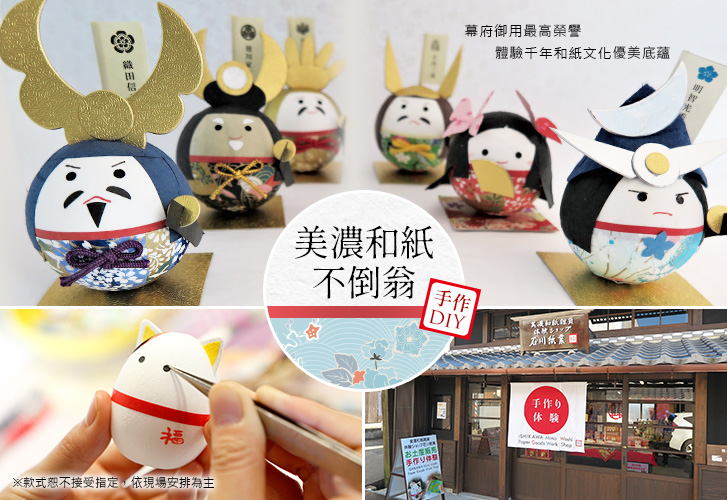 ★特別安排~透過「美濃和紙不倒翁手作DIY」體驗,從簡單的創作中認識美濃和紙的樂趣,探尋歷史悠久的傳統工藝,盡情感受日本文化的優美底蘊。