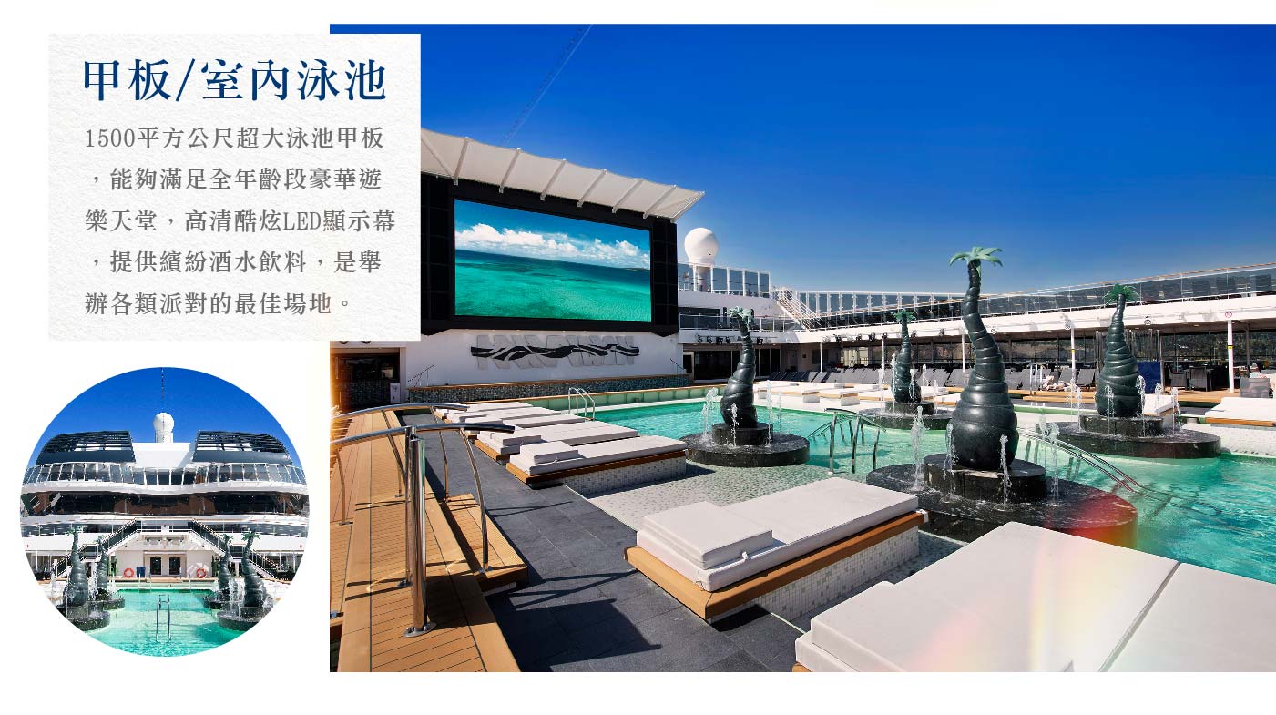★郵輪航程期間的設施開放、派對活動與付費服務價格項目等等,如有所調整,請依船上公告為準!