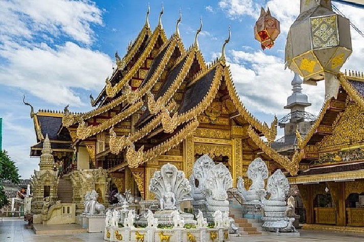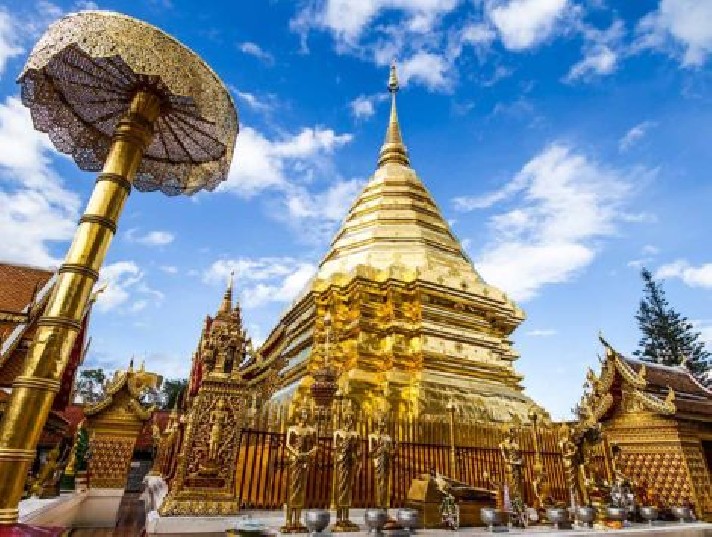 位於素帖山國家公園金光閃閃的雙龍寺,我們將安排您搭乘纜車上山去,三百階梯免煩惱。雙龍寺也是泰國的一座上座部佛教寺廟,距離清邁市15公里,座落在海拔1053公尺的高山上,傳說有位錫蘭高僧帶了幾顆佛舍利到泰國,交由白象選址後人們就建了舍利塔,又由於山路兩旁有兩隻金龍守護,所以叫雙龍寺。